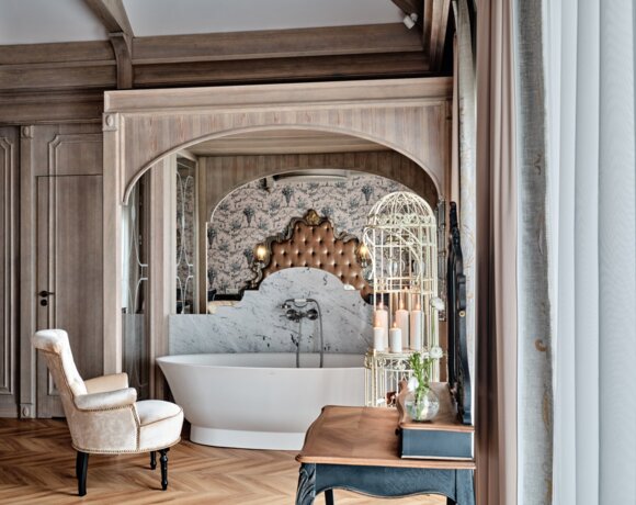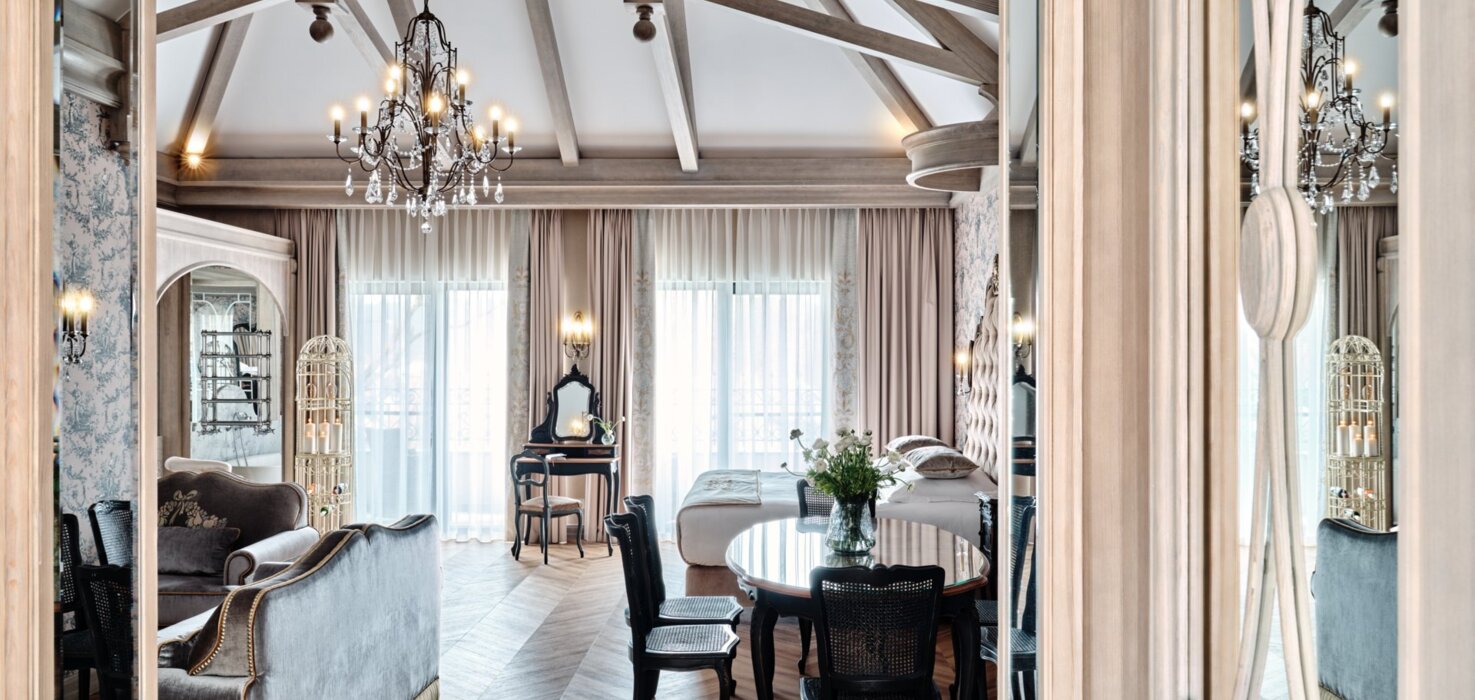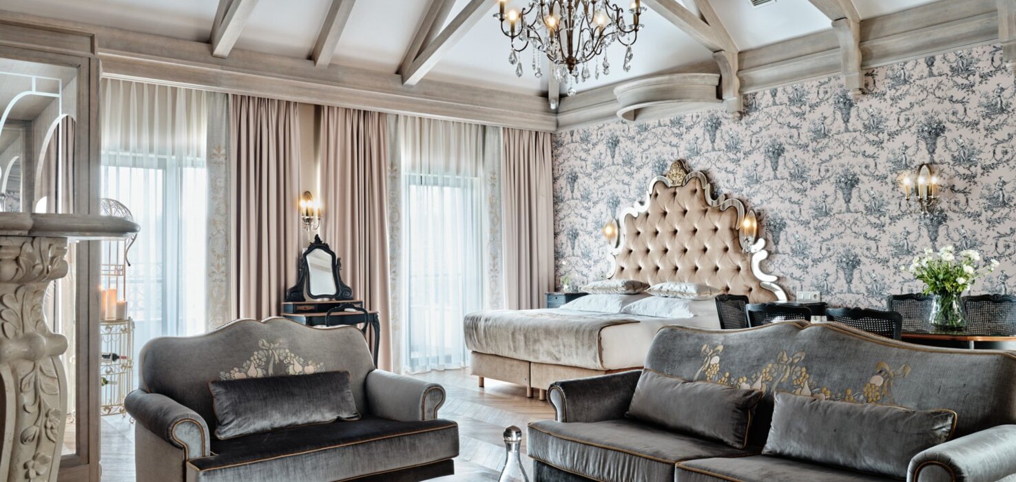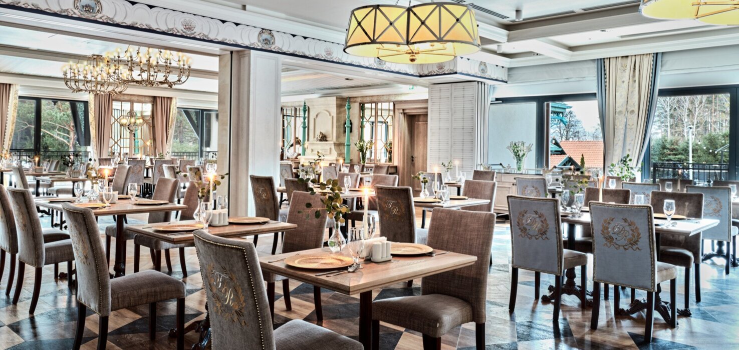 Od wysokich sufitów zapewniających przestronność pokoi, przez wykonane na zamówienie meble w stylu wersalskim, po ręcznie malowane obrazy przedstawiające faunę i florę Krainy Wielkich Jezior Mazurskich zdobiące ściany pokoi i naszego lobby. Klimatyczne, bogato wyposażone wnętrza Resortu Złota Łania zachwycają nawet najbardziej wymagających Gości.
