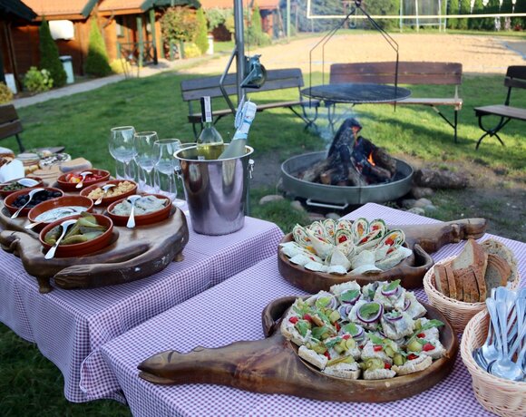 Istnieje możliwość wynajęcia wiaty grillowej lub ogniska na wyłączność. Nic nie dodaje urokowi Mazur jak ognisko nad jeziorem gdzie woda niesie muzykę przygrywaną na gitarze i śpiew a zapach palonego drewna wprowadza nas w błogi nastrój do długich rozmów w blasku ogniska. W naszej ofercie znajdziesz ofertę zestawu na ognisko dla siebie i rodziny.